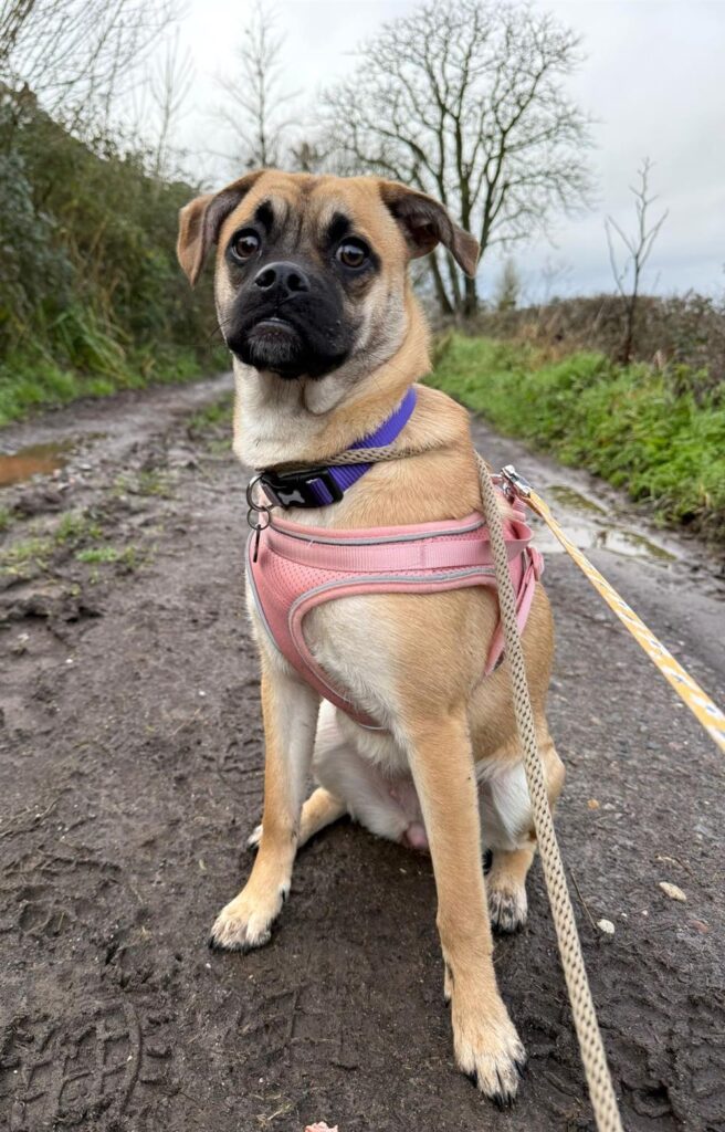 When Kali first arrived, she was a little unsure of new things, but her confidence is growing every day. We’re now seeing a very affectionate, eager-to-please young dog who enjoys learning and building bonds with the people around her. She has some basic training in place and is getting to grips with house manners, but she would benefit from continued training and further socialisation, particularly around other dogs. We offer puppy classes and would love her adopters to enrol her so she can continue developing these important skills.