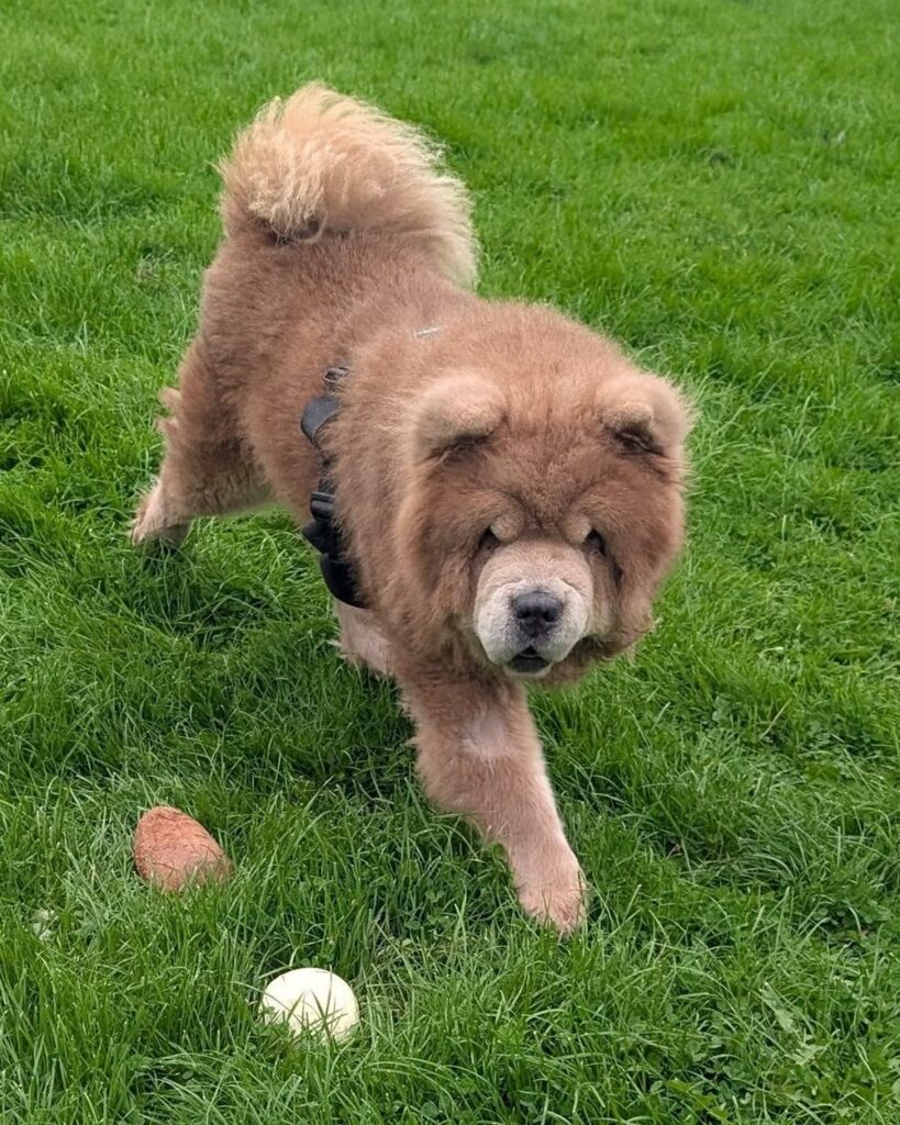 He’d probably be best suited to a home without young children (just as he’s such a big boy!) but living with dog-savvy teenagers would be okay. A cat-free home would be best for Louie, as Chow Chows do have a tendency to chase small furries.