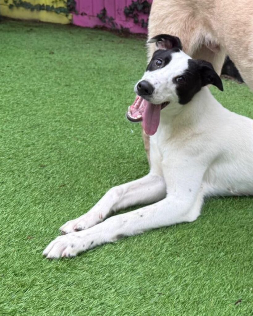 Splash would be very happy to be rehomed with another dog in the home who could teach him the rules, or he’d be just as happy as the only dog in the home. At the centre Splash loves to play games of chase, so we think he’d be best suited to a cat-free home.