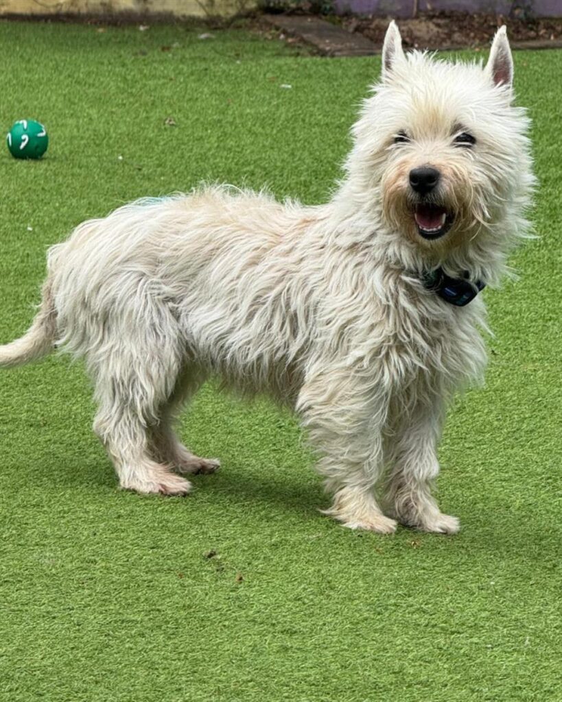 This is Victoria, she is a very sweet but timid little girl who is looking for an experienced owner with lots of time, patience and understanding. She’d suit a home experienced with Westie’s who know the breed (and their quirks!)